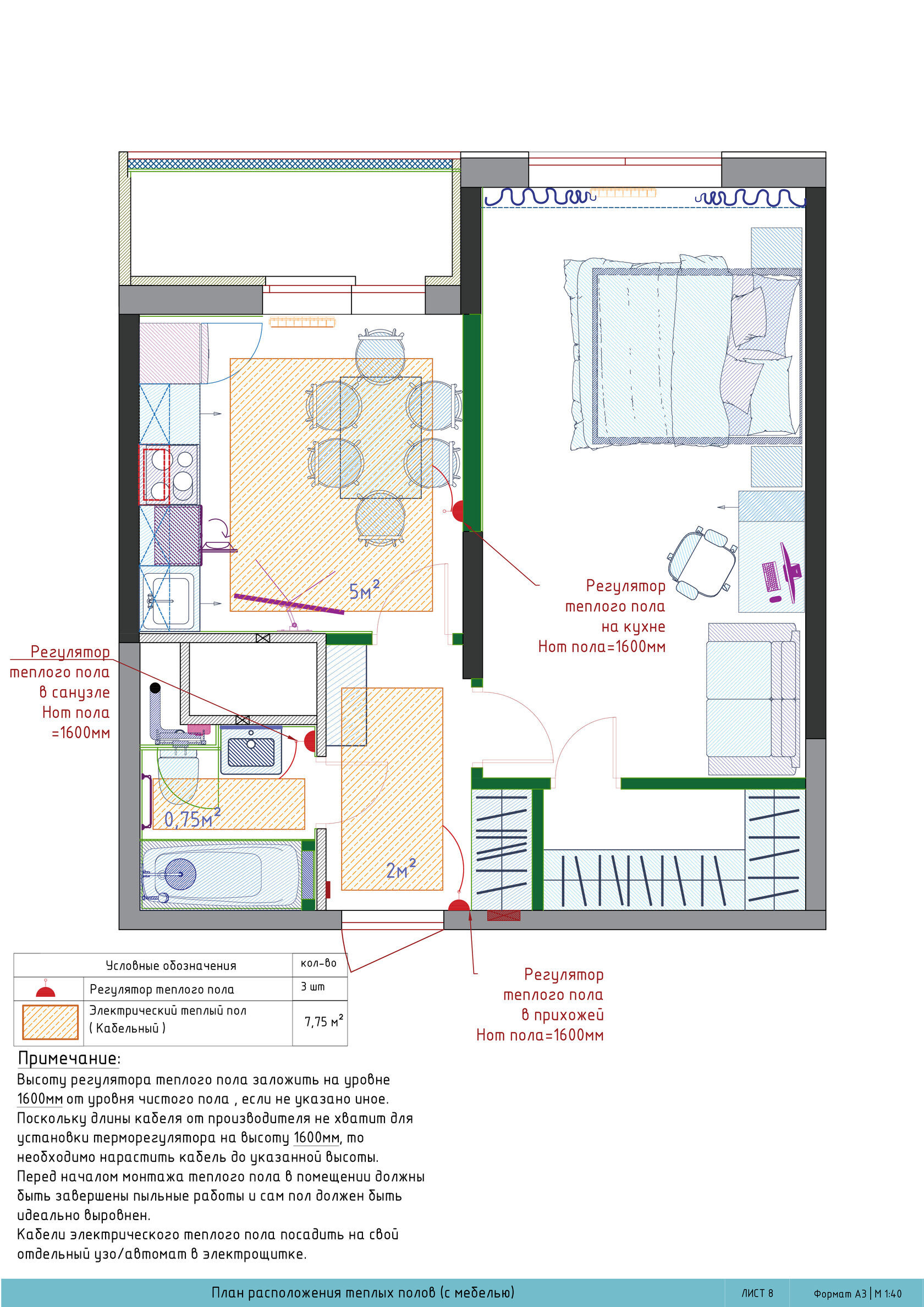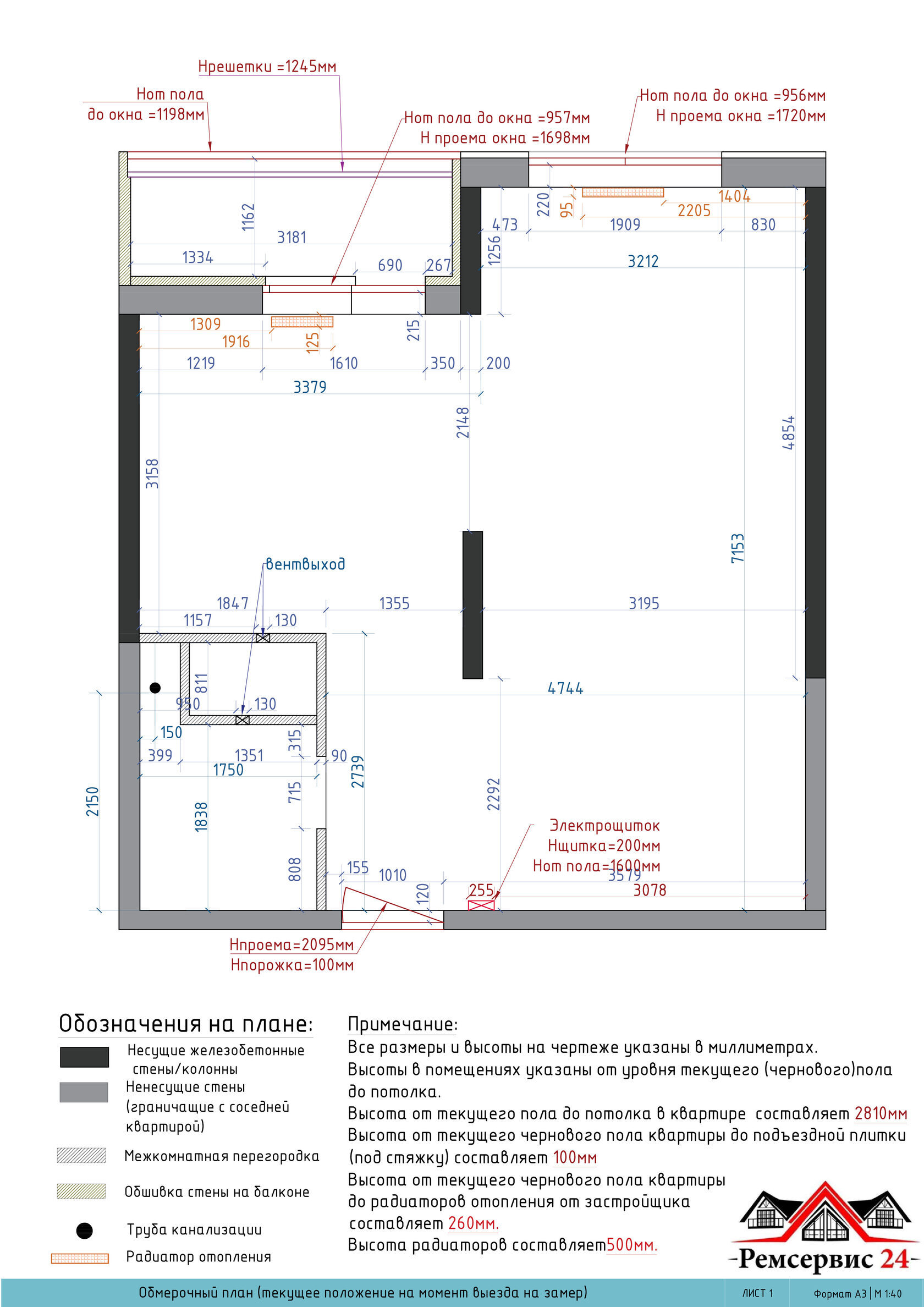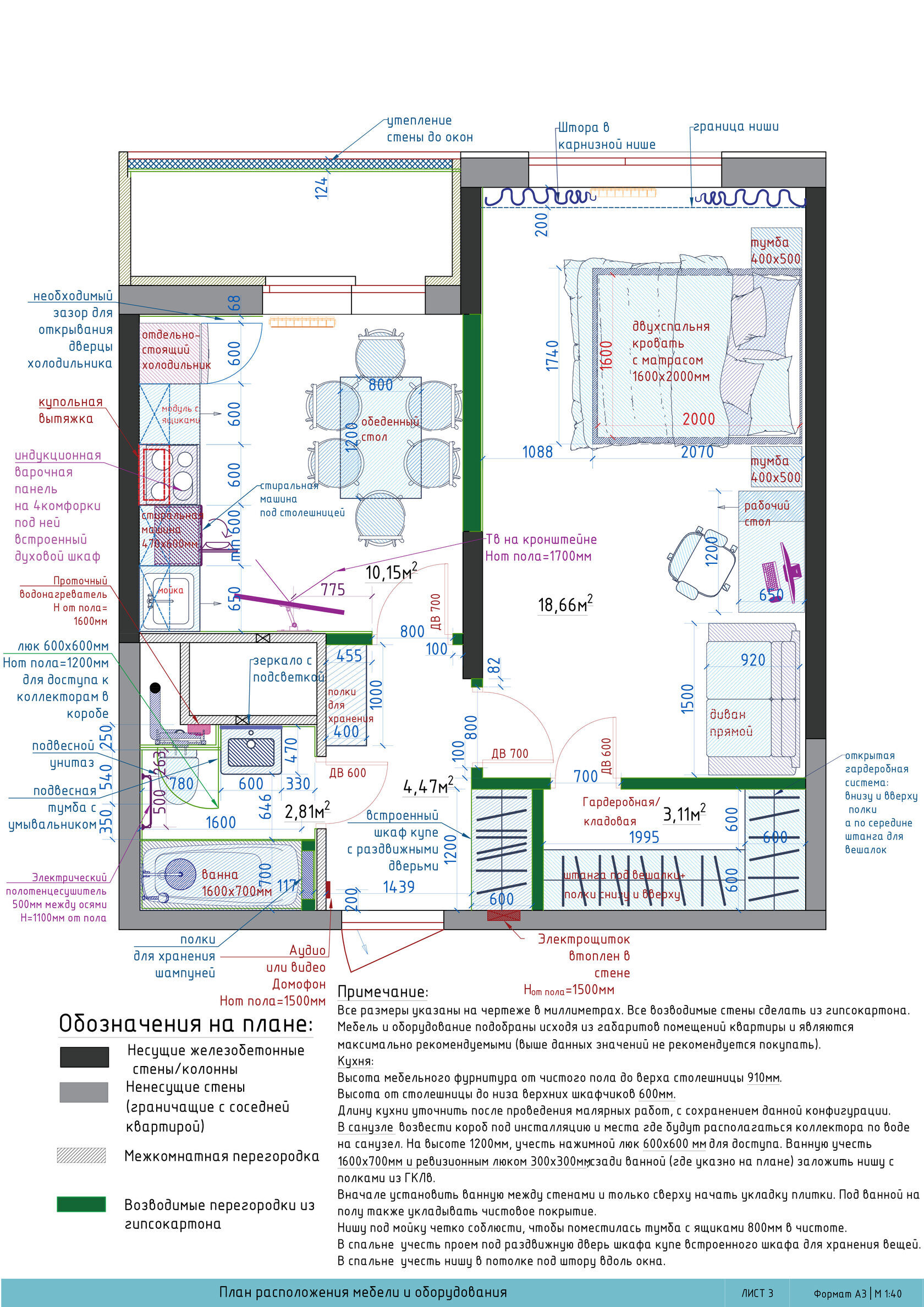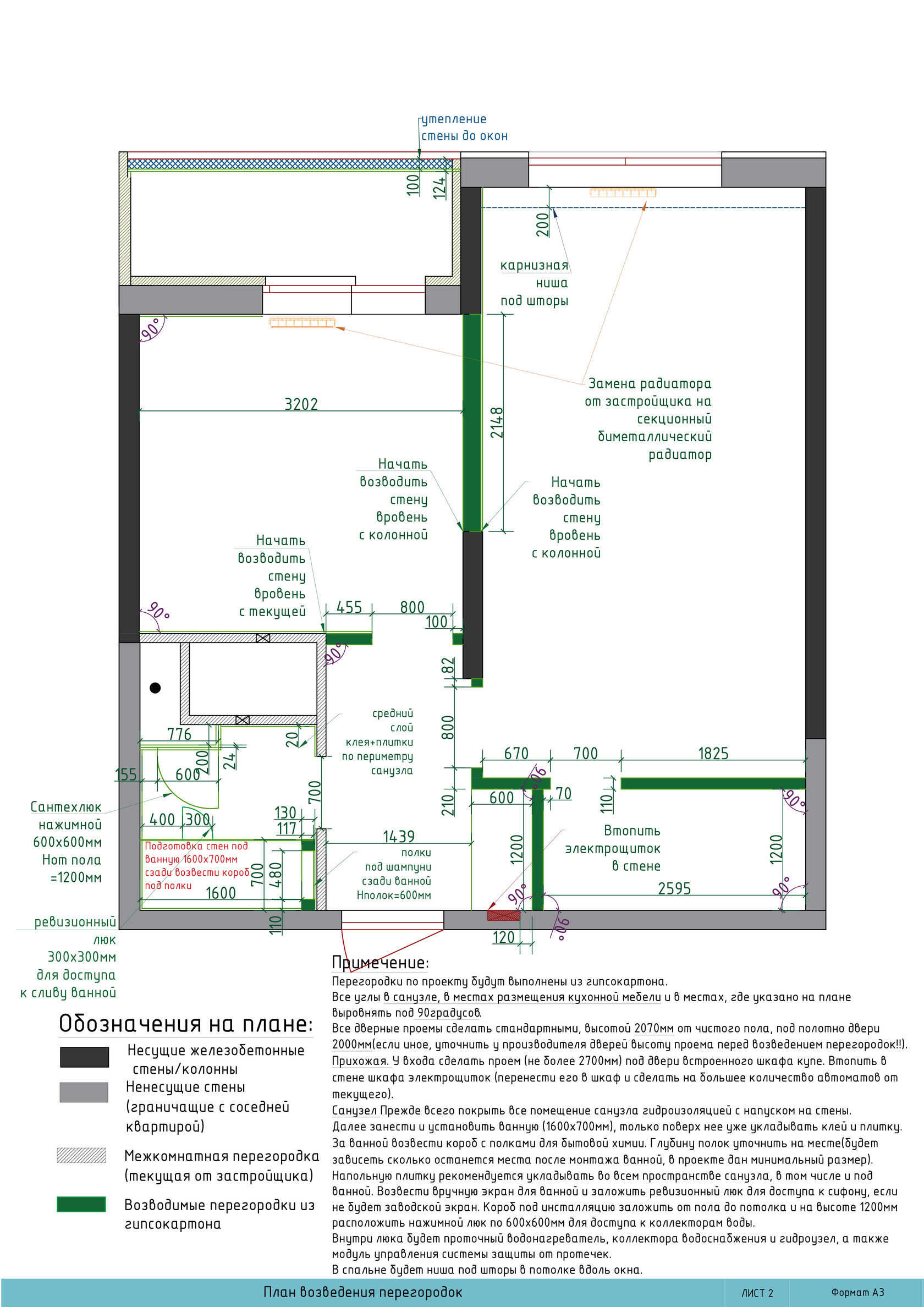Детальная проработка чертежей с учетом перепланировки и монтажа.
